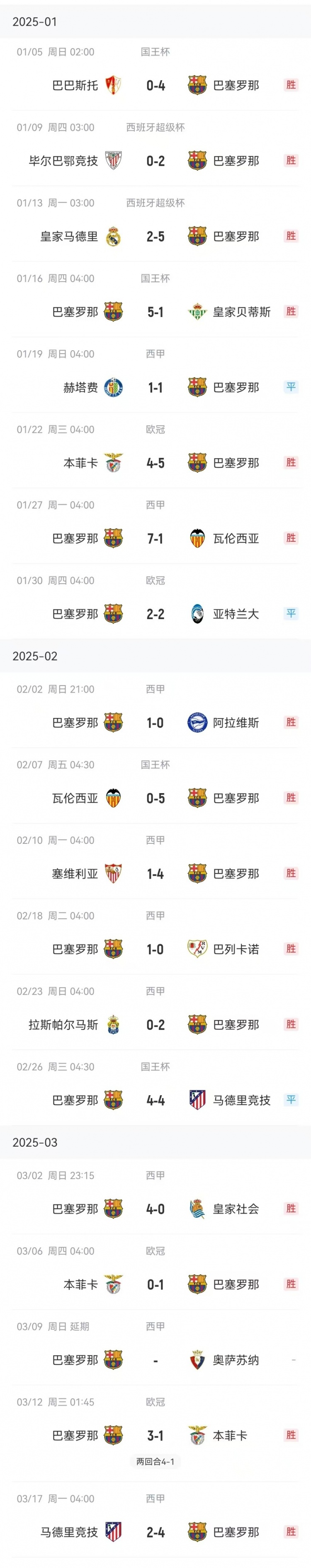 2025-03-17 07:09:21今年還沒輸過!巴薩各項賽事近18場15勝3平,打進58球丟19球