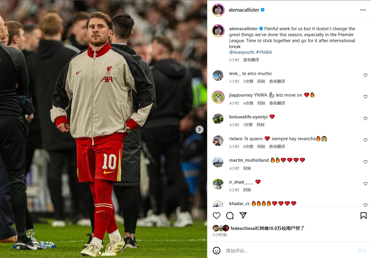 2025-03-18 08:05:44麥卡利斯特社媒:這是痛苦的一周,國際比賽日后要全力以赴