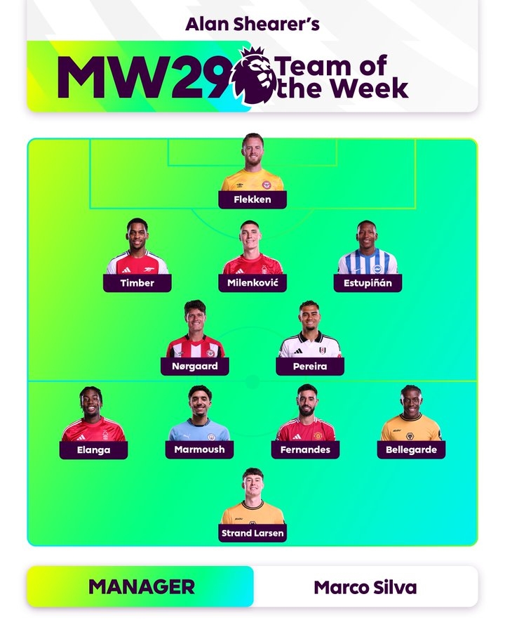2025-03-18 08:12:49希勒評本輪英超最佳陣容:B費領銜,廷伯、馬爾穆什、佩雷拉入選