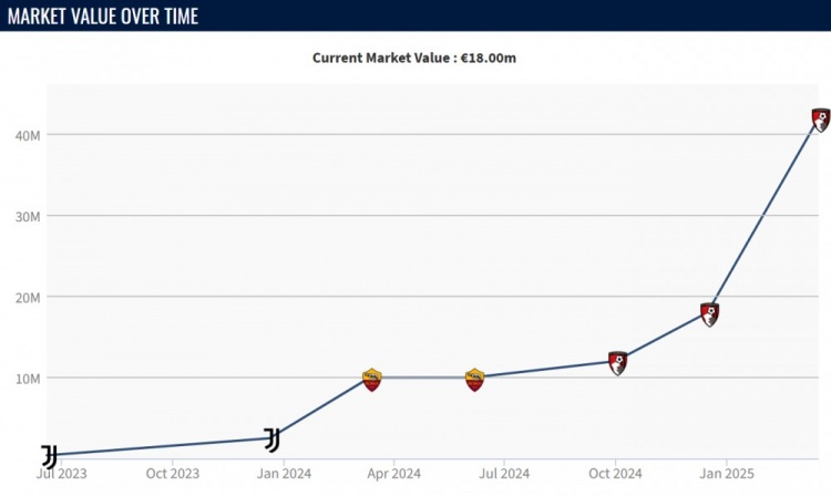 2025-03-18 21:03:02暴漲2400萬歐,19歲伯恩茅斯后衛懷森身價已達4200萬歐
