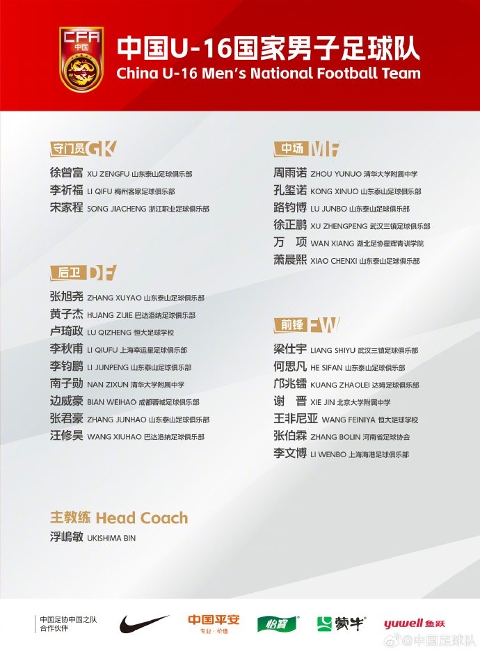 2025-03-18 21:05:41U16國(guó)足集訓(xùn)名單:梁仕宇、萬(wàn)項(xiàng)、鄺兆鐳在列,泰山8人