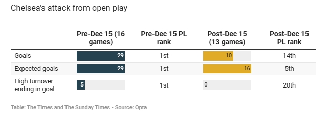 2025-03-19 16:32:39切爾西英超前16輪29粒運動戰進球最多,最近13輪10粒排名第14