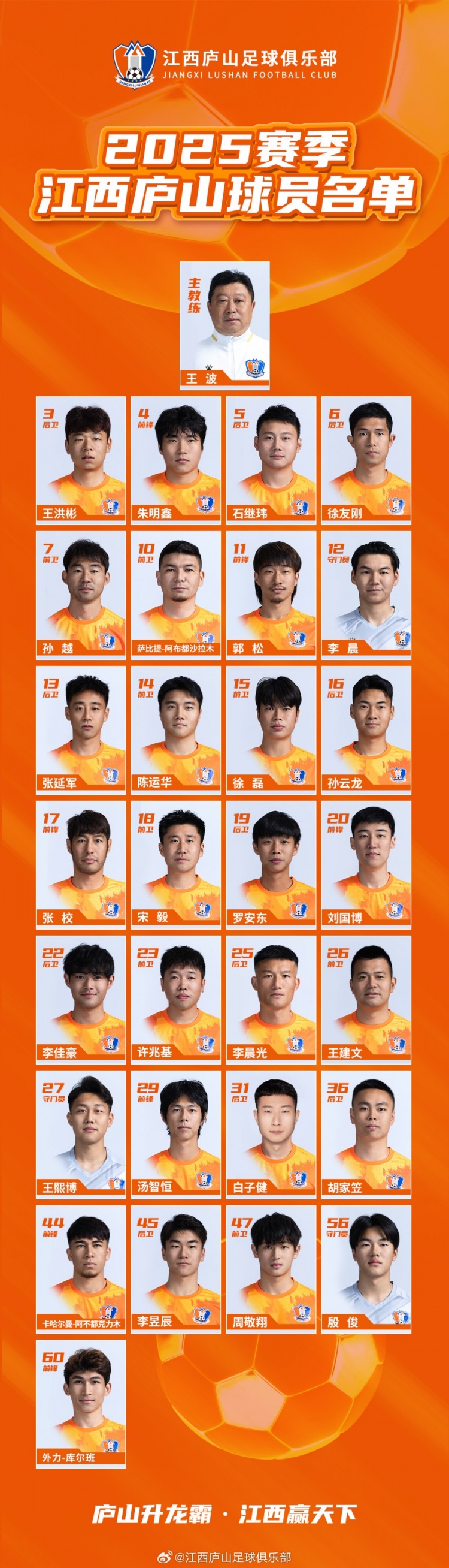 2025-03-19 16:37:13江西廬山足球俱樂部2025賽季球員大名單