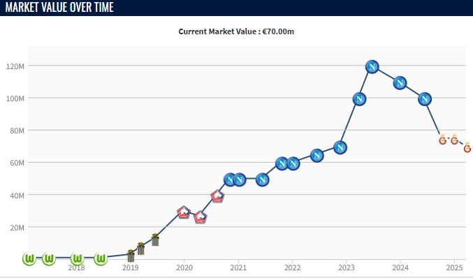 2025-03-20 22:51:26解約金7500萬歐!奧斯梅恩身價降至7000萬,賽季30場26球曼聯覬覦