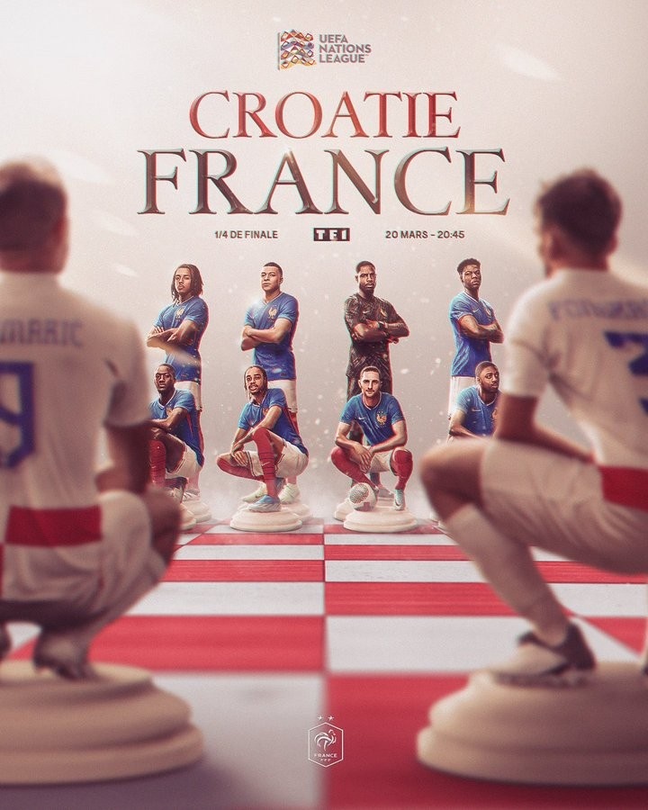 2025-03-20 23:01:03法國曬海報預熱戰克羅地亞:國際象棋為靈感,姆巴佩出鏡
