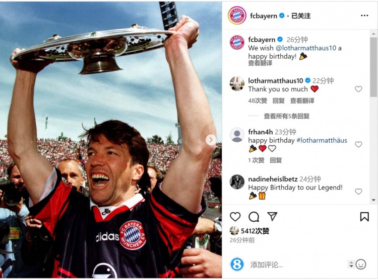 2025-03-21 19:51:13拜仁祝馬特烏斯64歲生日快樂,效力期間出戰410場斬獲15冠