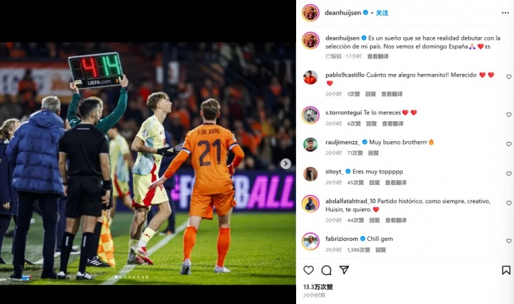 2025-03-22 06:17:13懷森社媒紀念國家隊首秀:夢想成真!我們回到西班牙再見