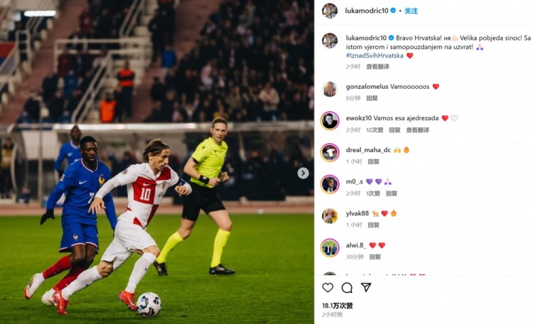 2025-03-22 06:17:30力克大熱門法國!莫德里奇社媒:次回合要保持同等信念和自信