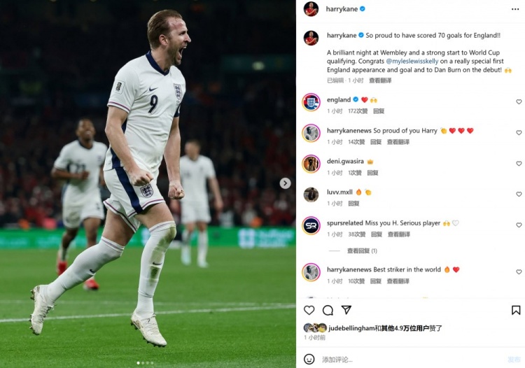 2025-03-22 16:16:03凱恩社媒曬照:自豪打進在英格蘭的第70球,祝賀斯凱利首秀破門