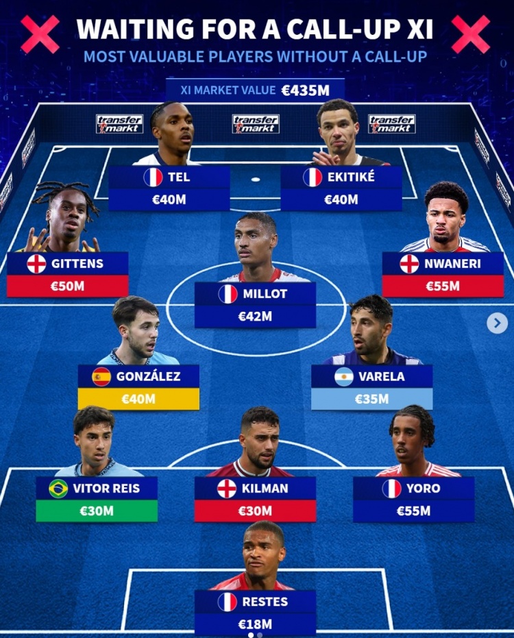 3月22日訊 本月的國家隊比賽正在進行中,《轉(zhuǎn)會市場》也列出了仍未獲得國家隊征召的當(dāng)前最貴陣,法國5將在列。