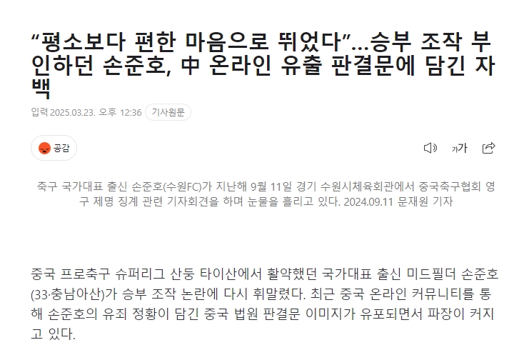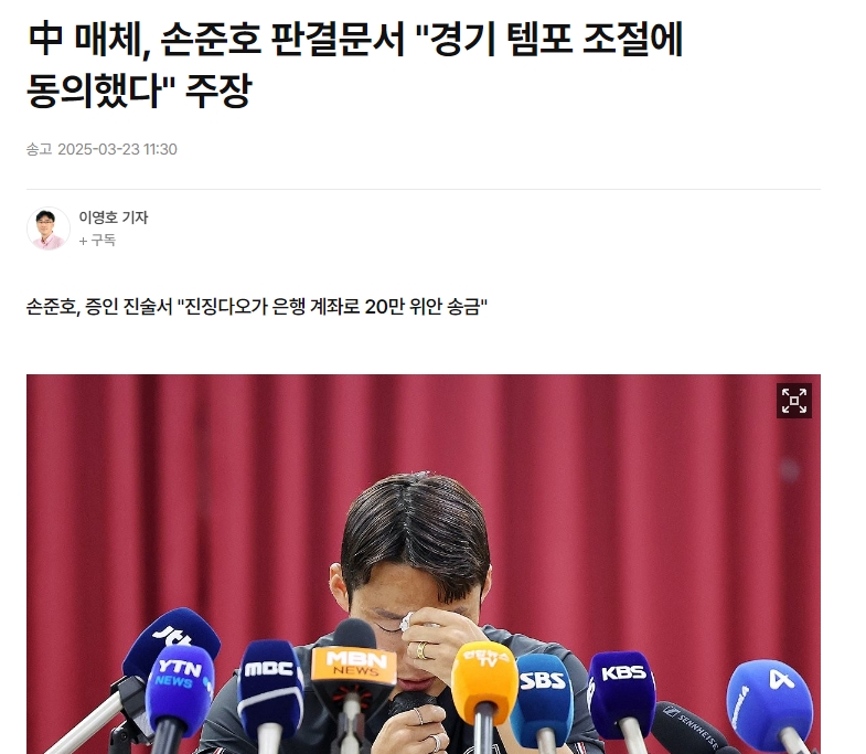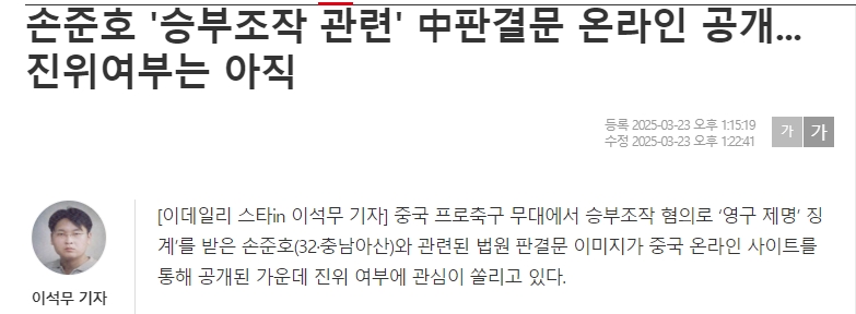 2025-03-23 15:03:57韓媒關注孫準浩證詞:此前球員否認現在承認 判決真實性尚不清楚