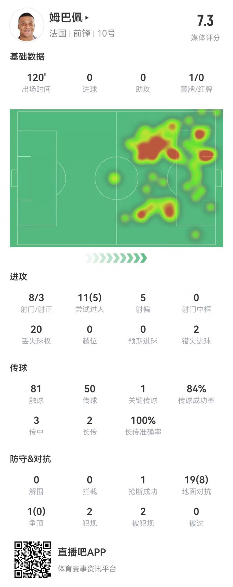 2025-03-24 19:23:37姆巴佩本場8射3正+2失良機+點射命中 20對抗8成功+20丟失球權(quán)