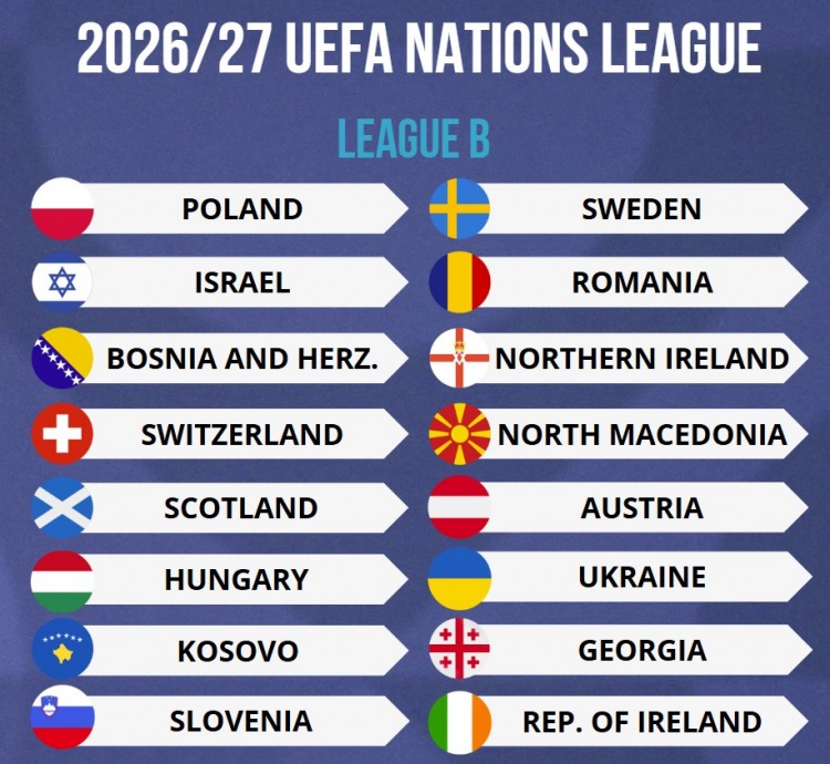 2025-03-24 19:23:42歐國聯2026-27賽季B級別球隊出爐:蘇格蘭、烏克蘭、波蘭在列