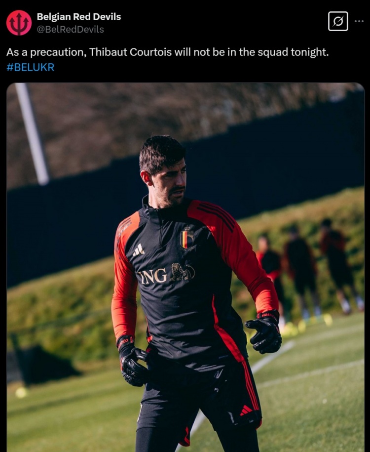 2025-03-24 19:25:36膝蓋出現傷情,比利時官方:作為預防措施,庫爾圖瓦不出戰烏克蘭
