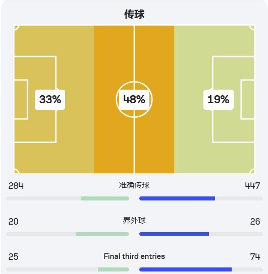 澳大利亞玩的就是效率,控球率、進攻三區進入次數比印尼還少,可比分卻是大勝(藍色方為印尼)