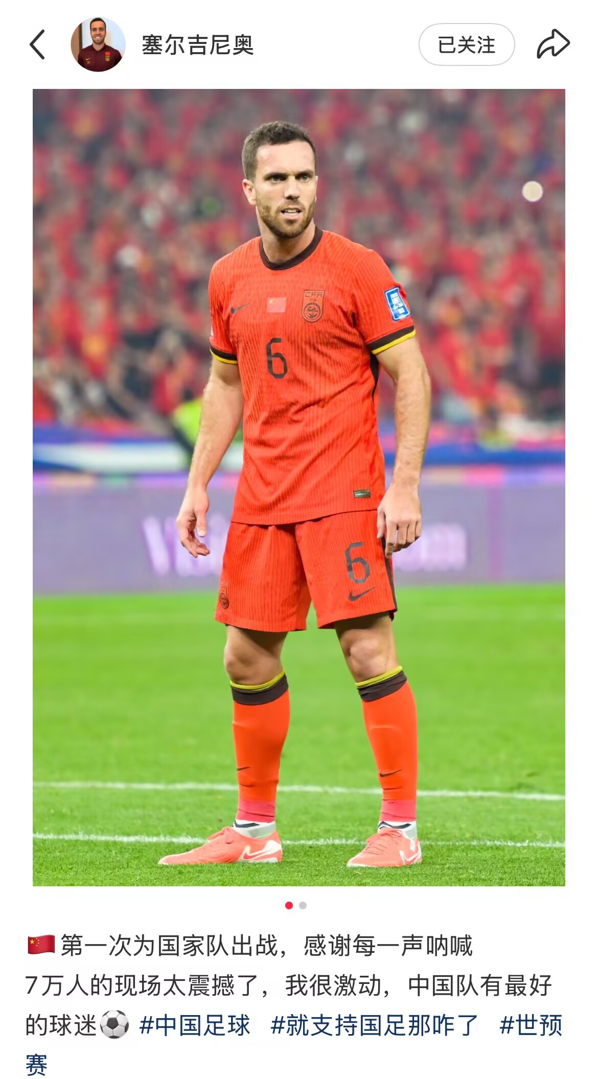 2025-03-26 03:08:39塞鳥發文慶祝國足首秀:7萬人的現場太震撼了 中國隊有最好的球迷