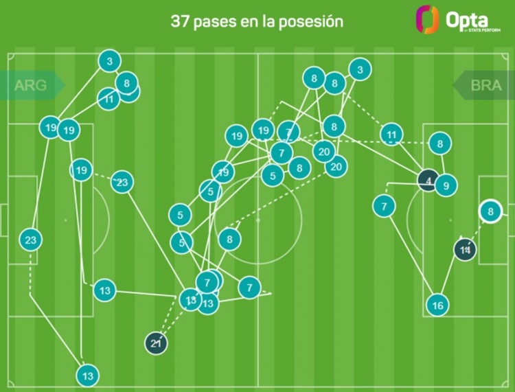 2025-03-26 20:14:55恩佐對陣巴西的進球經過37次連續傳球,本屆南美世預賽第二多