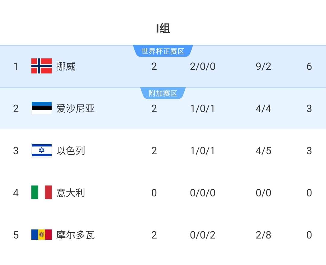 此前2022世界杯、2024歐洲杯挪威都未能進入決賽圈,隨著意大利在歐國聯落敗落位I組,兩隊即將在6月份迎來首次交鋒。