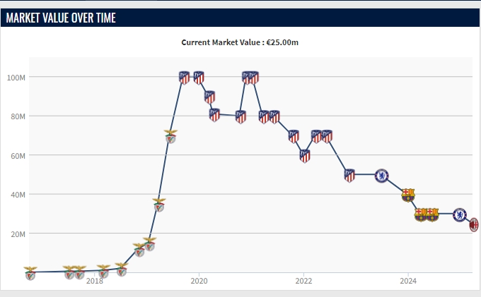 2025-03-26 20:21:20巔峰1億歐!25歲菲利克斯在米蘭10場1球,最新身價(jià)跌至2500萬歐