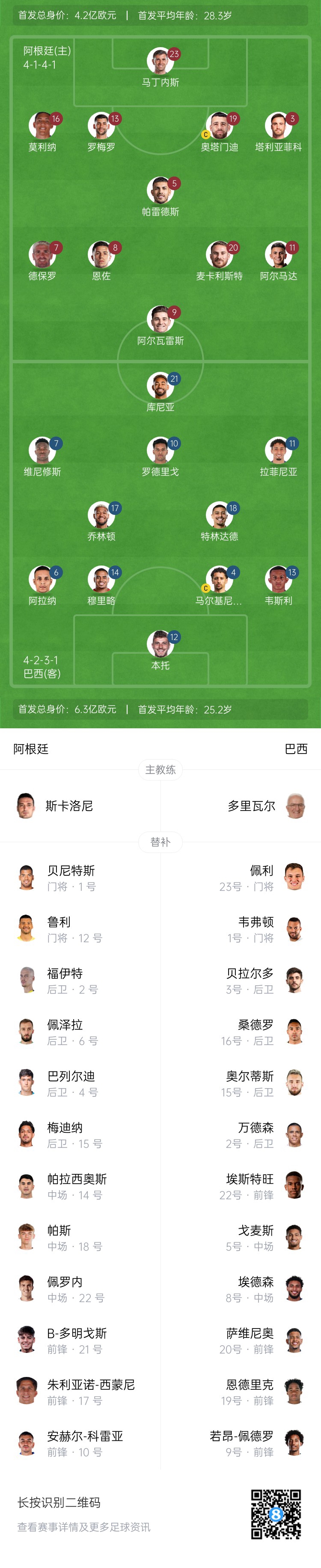 2025-03-26 20:34:59世預賽|阿根廷vs巴西首發(fā):德保羅復出,阿爾瓦雷斯PK維尼修斯