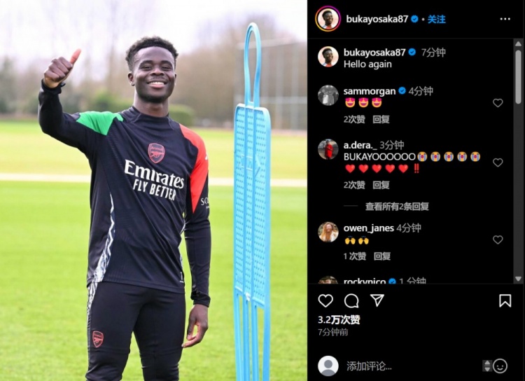 2025-03-28 01:57:34接近復(fù)出,薩卡社媒曬身穿訓(xùn)練服照片:又見面了