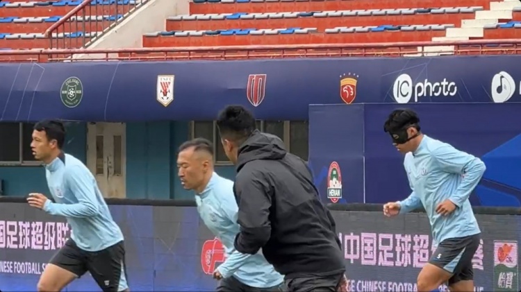 2025-03-28 19:26:12申花今天賽前踩場訓(xùn)練,中衛(wèi)朱辰杰戴面具參加