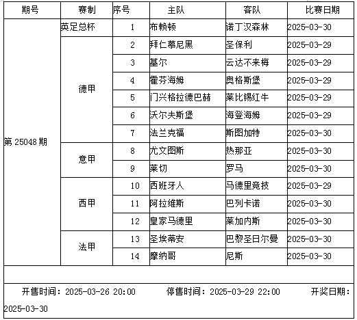 2025-03-28 19:27:02傳足勝負彩第25048期看點:尤文新帥首秀 皇馬留意FIFA病毒