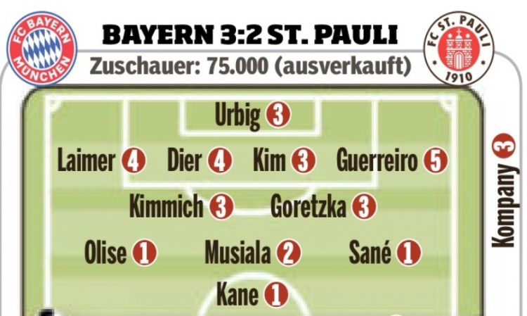 2025-03-30 20:10:34圖片報賽后評分:格雷羅5分最差&戴爾萊默爾4分,薩內等3人獲1分
