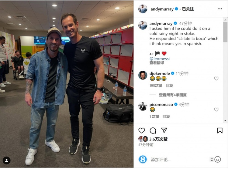 2025-03-30 20:12:48穆雷調侃:我問梅西能否在斯托克寒冷雨夜中踢球,他讓我閉嘴