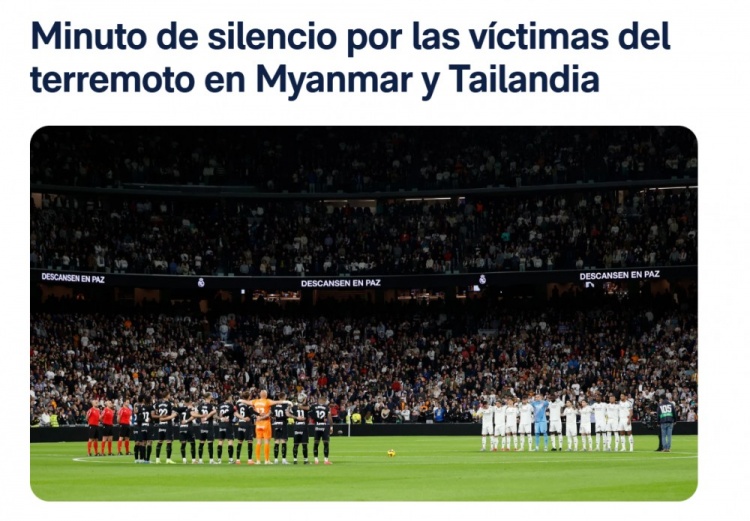 2025-03-30 20:13:39皇馬、萊加內(nèi)斯賽前列隊(duì)為緬甸、泰國地震遇難者默哀
