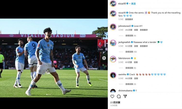 2025-03-31 09:56:07兩送助攻!奧賴?yán)麜衽鹫諔c祝,斯通斯&格拉利什等隊友紛紛鼓勵