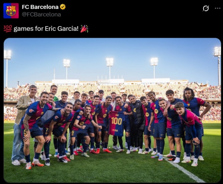 2025-03-31 10:02:03埃里克-加西亞迎巴薩百場里程碑,獲贈紀(jì)念球衣&與全隊合影留念