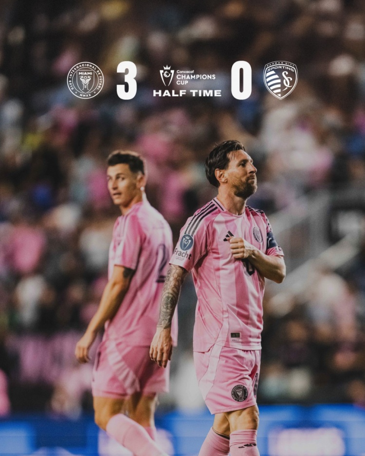 上半場比賽結(jié)束,邁阿密國際3-0堪薩斯城競技。