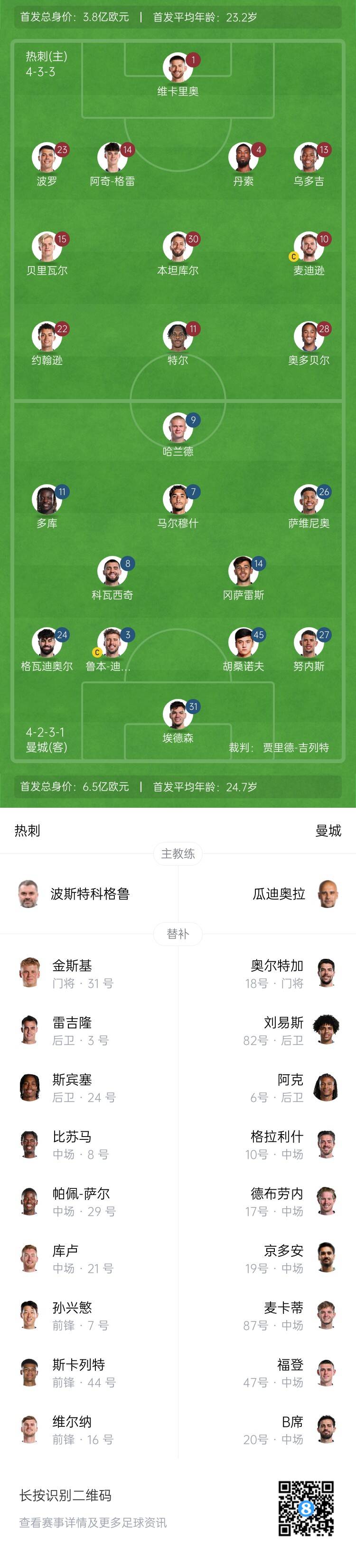 2025-02-27 08:04:31熱刺vs曼城首發:孫興慜替補,哈蘭德、馬爾穆什、多庫出戰