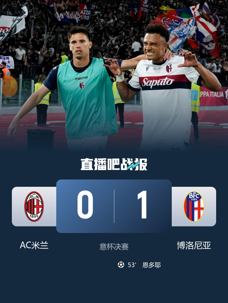 2025-05-15 14:44:05打入制勝球,恩多耶當選博洛尼亞1-0AC米蘭一役全場最佳球員