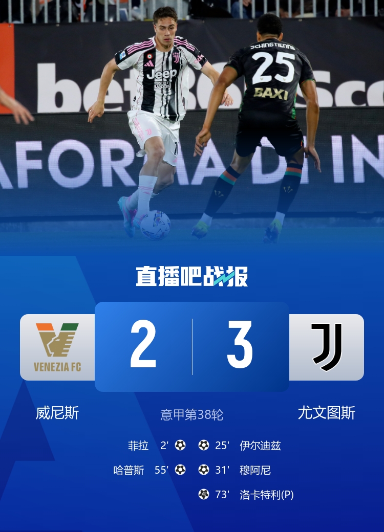 尤文末輪3-2擊敗威尼斯,拿下第4驚險晉級下賽季歐冠。
