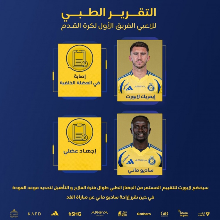 2025-02-28 08:01:19官方:馬內出現肌肉疲勞,拉波爾特肌肉損傷將進一步評估