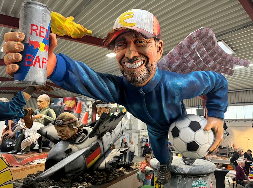 據報道,該彩車上是前美因茨球員和教練克洛普的身影,他的翅膀是用鈔票做成的,手里拿著一罐紅牛標志性的能量飲料和一個足球。彩車側面還寫道:“對于克洛普來說,他不再關心那些曾經很重要的價值觀。由于紅牛用大量金錢誘惑他,他現在正從自己的寶座上跌落下來。”