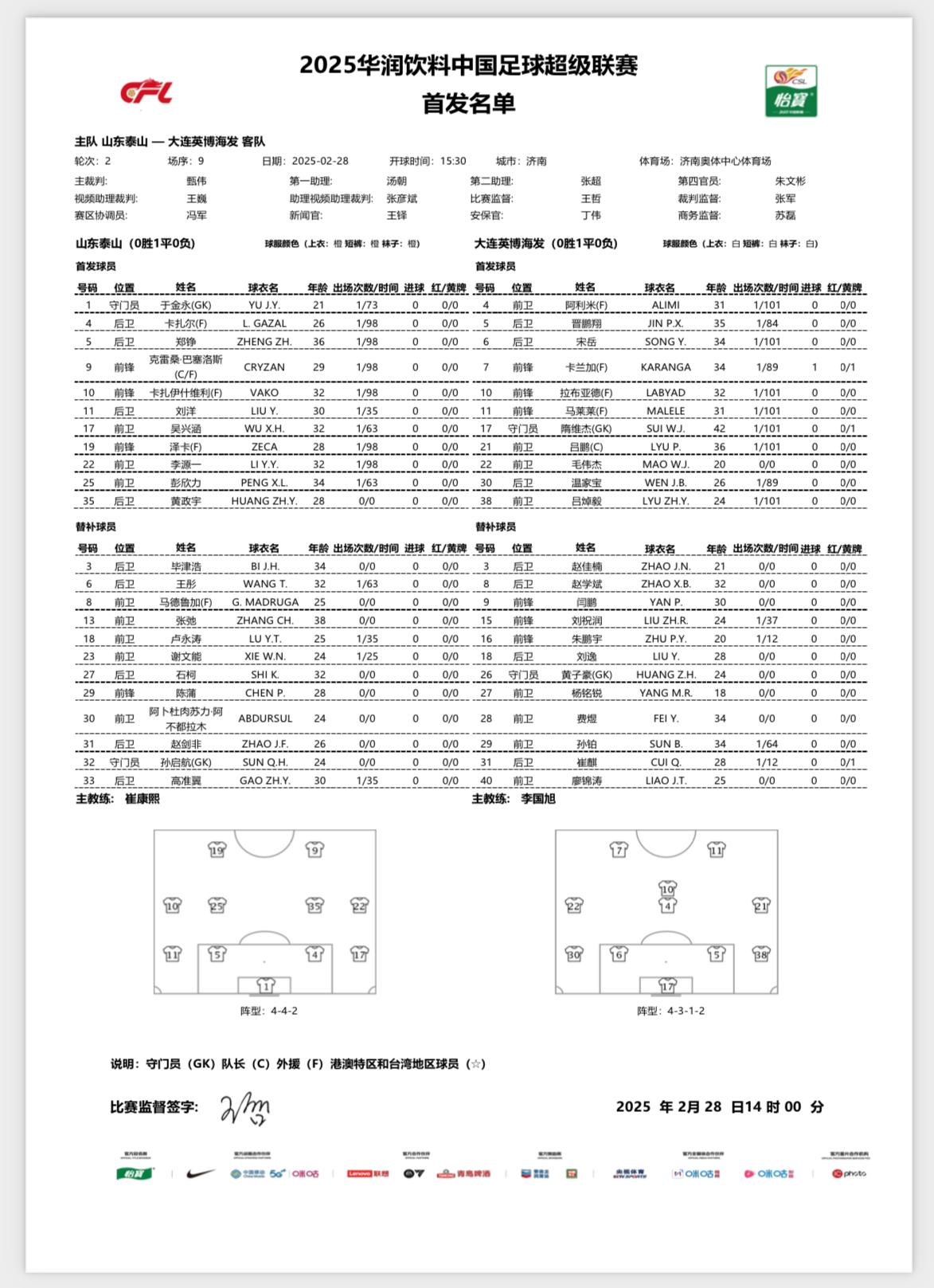 2025-02-28 16:01:3519歲國青小將毛偉杰進入大連英博戰泰山首發,將迎中超首秀