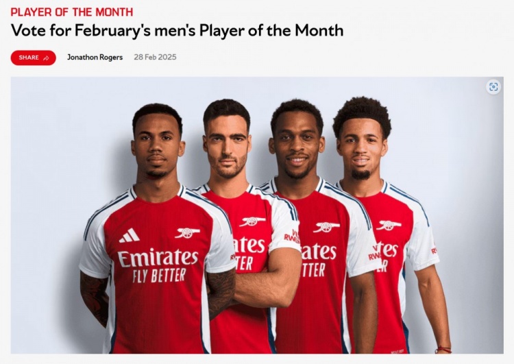2025-03-01 00:37:20阿森納2月隊內最佳候選:加布里埃爾、梅里諾、廷伯、恩瓦內里
