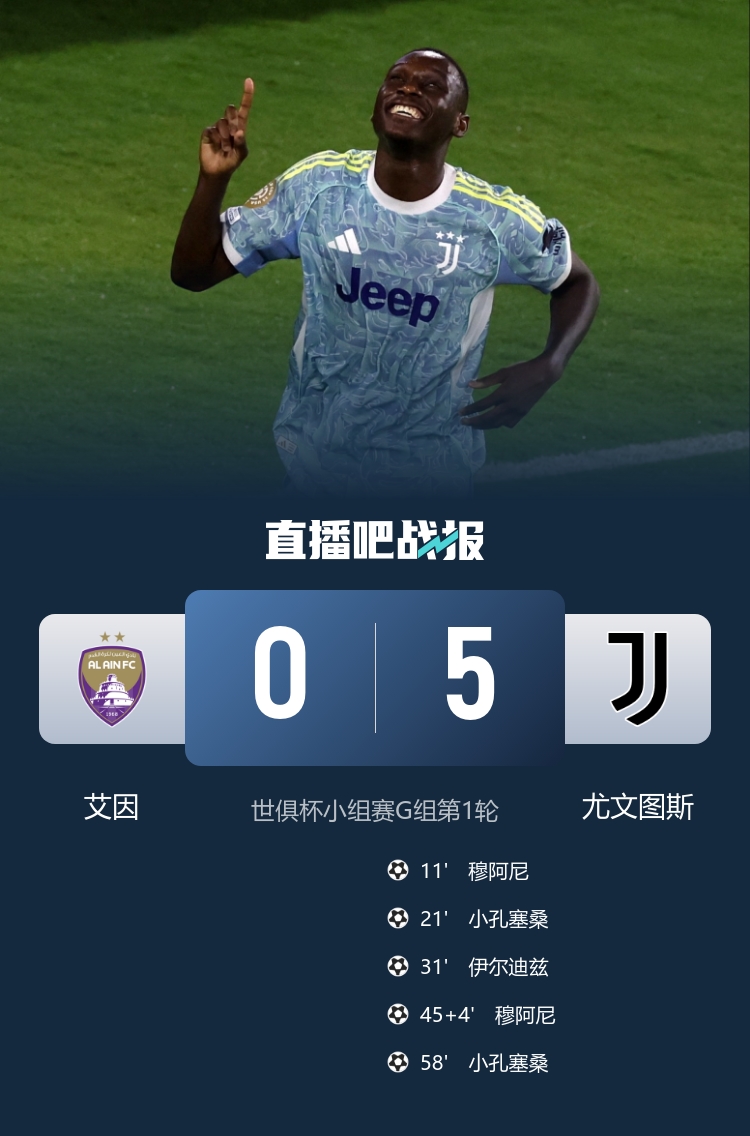 2025-06-19 17:22:435-0擊敗艾因!尤文2003年之后首次在國際賽事中凈勝5球