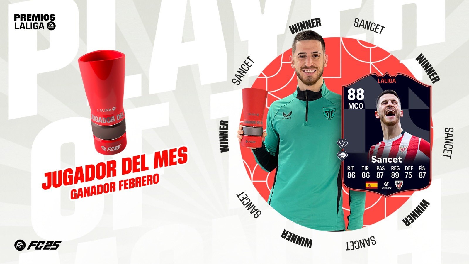 2025-03-01 08:08:18力壓姆巴佩&安東尼!官方:畢巴中場桑謝特當選2月西甲最佳球員