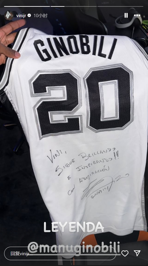 2025-03-01 16:00:59維尼修斯社媒曬吉諾比利簽名球衣:傳奇