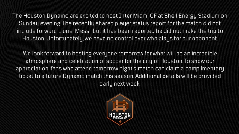 2025-03-02 17:43:15主場戰邁阿密但梅西輪休!休斯頓官方:觀賽球迷可免費獲1張門票
