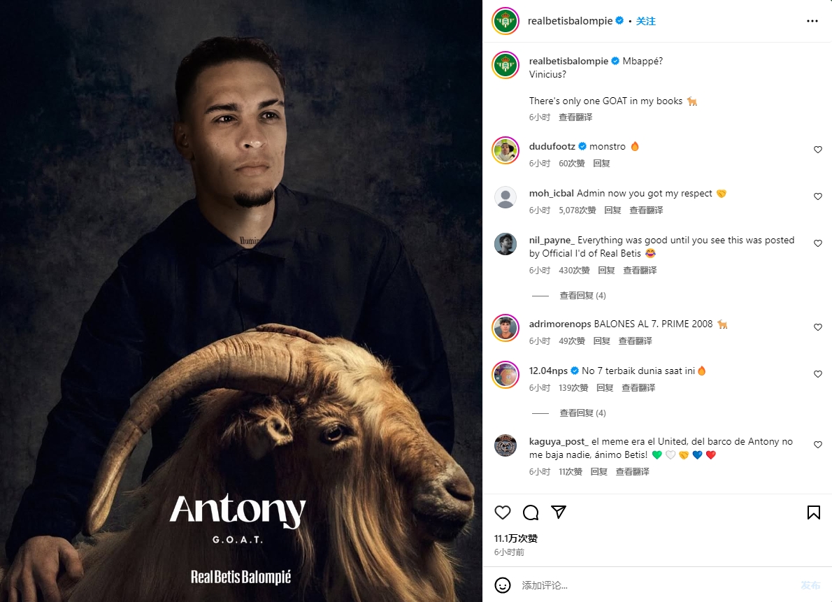 2025-03-02 17:43:52貝蒂斯官媒:姆巴佩?維尼修斯?我的字典里只有一位GOAT—安東尼