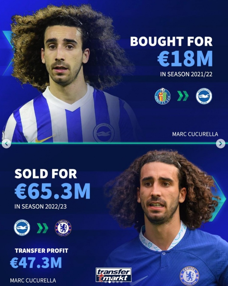3月3日訊 《轉(zhuǎn)會(huì)市場(chǎng)》統(tǒng)計(jì)了布萊頓近年的5筆低買(mǎi)高賣(mài)轉(zhuǎn)會(huì)操作,共計(jì)凈賺超過(guò)2億歐元。