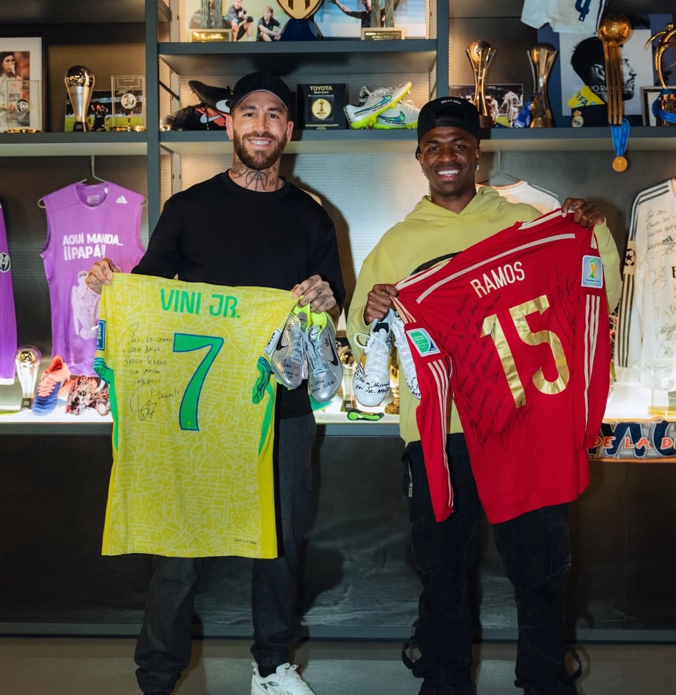 2025-02-21 17:39:07傳承!維尼修斯拜訪皇馬傳奇拉莫斯,兩人交換國家隊球衣