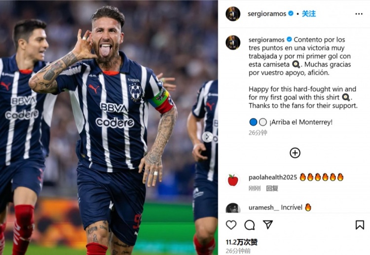 2025-03-03 17:20:11攻入蒙特雷生涯首球,拉莫斯:為艱苦的勝利和首球感到開心