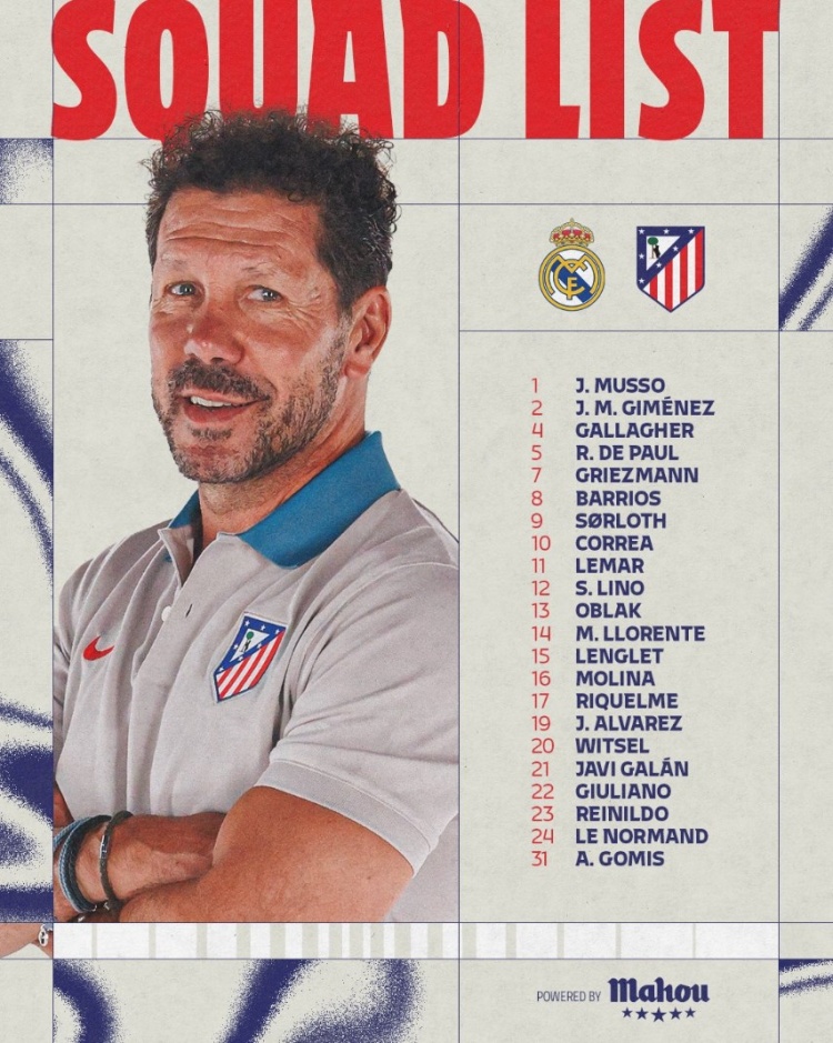 2025-03-04 19:57:09馬競公布戰皇馬名單:小蜘蛛&格列茲曼領銜鋒線,德保羅坐鎮中場