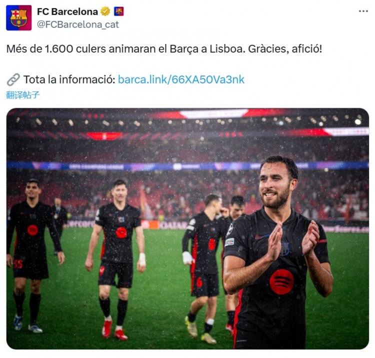2025-03-04 19:57:28巴薩官方:超過1600名巴薩球迷將在里斯本為球隊加油,感謝球迷們